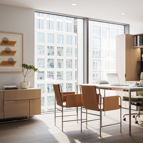 Like Ward Bennett’s other timeless designs, this chair is subtle and sophisticated. Upholstery wraps the welded tubular steel frame to create the seat, sides, and back. Likewise, the chair wraps around the sitter, and is comfortable and comforting in both office and home environments.