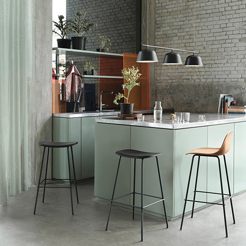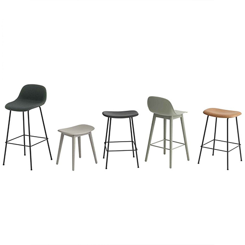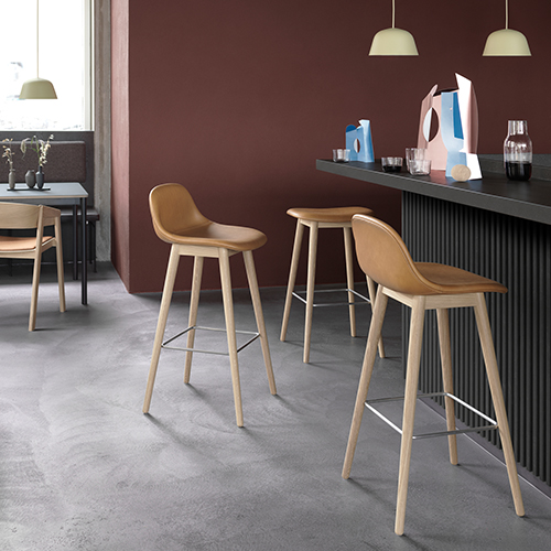 The Fiber family is a new interpretation of the iconic shell chair, adding a new perspective to the form with its shell made in an innovative composite of plastic and wood fibers, giving the Fiber family a uniquely deep surface and soft, matte touch. Though invisible to the eye when viewed from afar, the natural details of the wood fibers are revealed when viewing the design up-close.