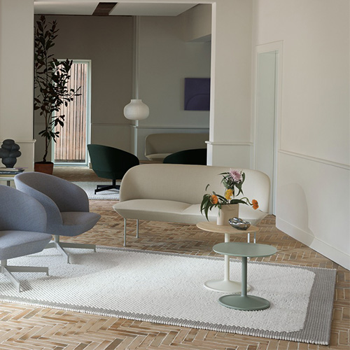 The Oslo Sofa is designed with sculptural, geometric lines for a sophisticated expression, paired with its soft seat and enveloping back. With its playful lines, the design brings elegant comfort to any lounging setting.